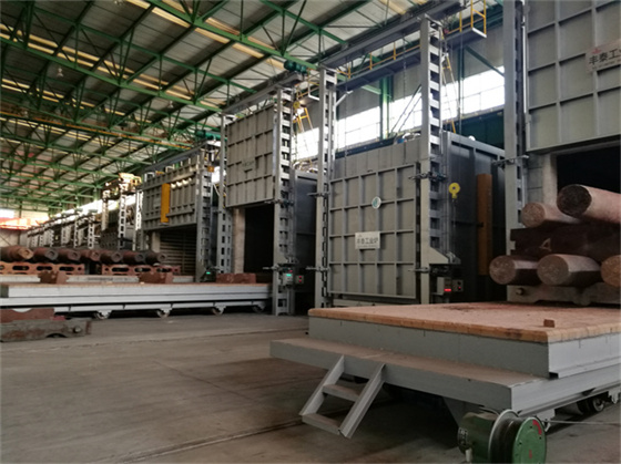 臺(tái)車爐為長(zhǎng)方箱形結(jié)構(gòu),承重平臺(tái)為可移動(dòng)小車,工件堆放在工作臺(tái)上,進(jìn)出電動(dòng)傳動(dòng),爐門上下開關(guān),電動(dòng)控制;爐襯采用全纖維硅酸鋁甩絲毯制成模塊筑成爐體,爐底采用輕質(zhì)保溫磚和重質(zhì)耐火磚砌筑,加熱元件采用電阻絲和電阻帶加熱,爐體外殼采用鋼板和型鋼制作,爐門、臺(tái)車采用機(jī)械傳動(dòng);具體配置按客戶和爐溫要求設(shè)計(jì)配備。